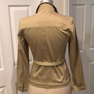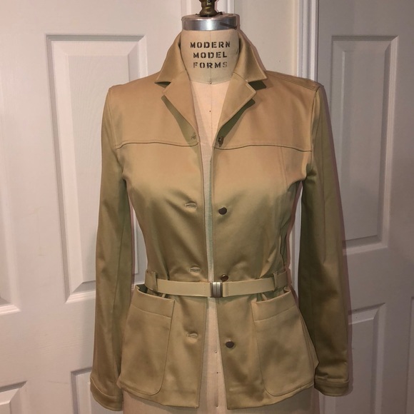 From Paris:Cotton satin jacket with belt. Never been worn. jacket is excellent condition. Belt is average condition (inside the glue is slightly separated)