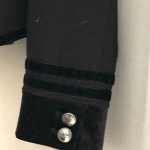 Beautiful black jacket with velvet and lace embellishments. Looks great with jeans or dressed up