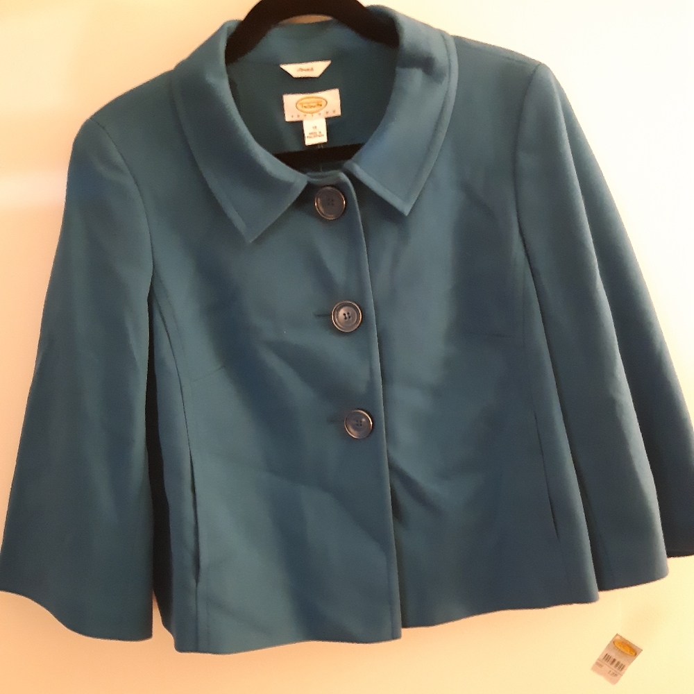 Pretty soft blue jacket .lined. never worn. Tag on. Bell sleeves.