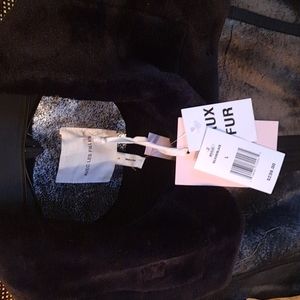 Absolutely stunning. One of a kind. Faric soft faux leather. Looks as if it is sprayed with silver. Patterned with segments. Faux fur trim collar waists & cuffs. Very warm coat