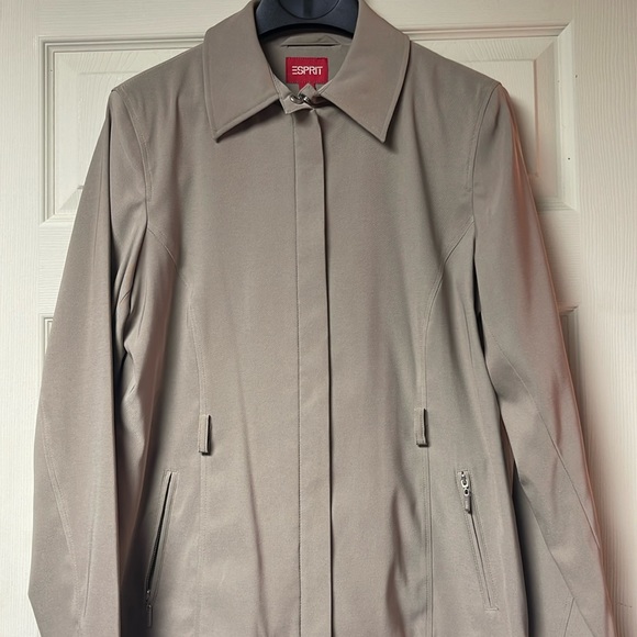 Twk; poplin knit zip up Jacket. Cute for in betwen seasons. 2 slant front pockets. Missing matching belt. Can remove belt loops