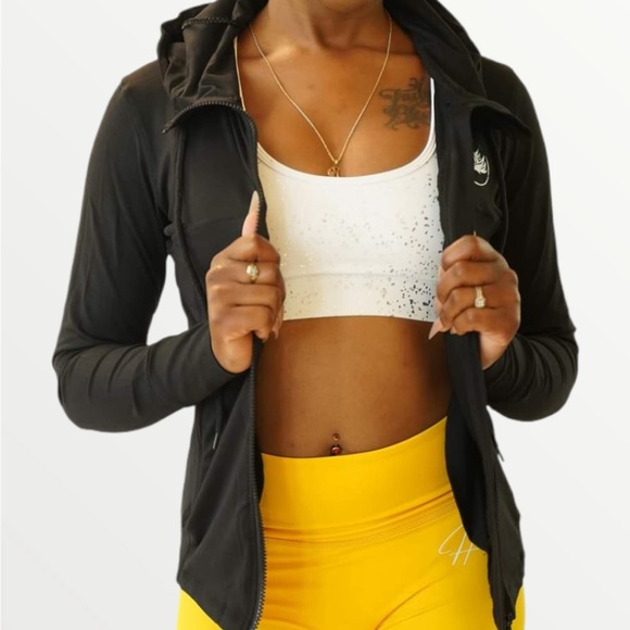 Hello Comfy town. This jacket is light weight and silky soft performance fabric works perfectly for your layering game. This jacket can easily accompany you in your workout sessions or on your daily adventures. Features: *4-way stretch *Moisture Wicking *Full length zip *Signature thumbhole sleeves