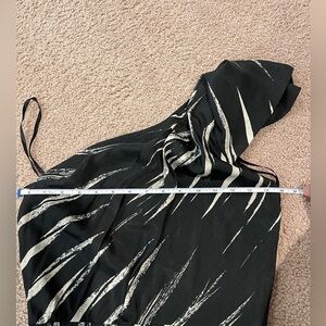 Women's Junior THE LIMITED black & white one shoulder mini dress, size 2, made of polyester material with inner linings, side zip-up closure, non-stretch waistline, with ruffle accent on one shoulder. Preloved, used only once, in excellent condition. #minidress #black&white #thelimited