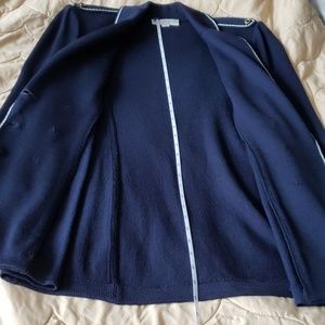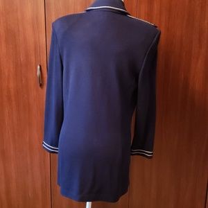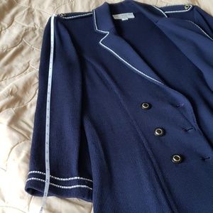 St.Johns, beautiful, navy blue, white trimmed, always in style, double breasted knitted jacket, Inside removable shoulder pads. Excellent condition. Worn few times for special occasions. No signs of wearing. Must have it. The ladies, who knows what the style means, please come with appropriate offers. Open to negotiate the price. Fast shipping.