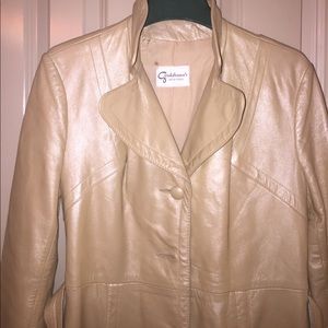 Ladies Leather coat in a gold tone belted. I bought this coat in 1977 there isn't anything wrong with it. It's back in style. The leather is soft and shimmery, I use Brahmin leather conditioner &cleaner. ( you can buy at Dillard's) it's really a pretty cost great for everyday with jeans or an outing. It's a size 12