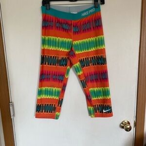 Nice and bright Nike dry fit pro, athletic crop capris. See additional pictures. No rips, tears or stains. Nice, bright and vibrant. Thanks for looking. Happy shopping.