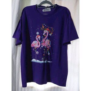 Ladies purple Pink Flamingo Santa Hat t shirt Crewneck Size XL purple length 30"
