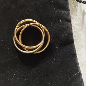 Bi goldtone and silver 2.5mm rolling ring trio. Size 7