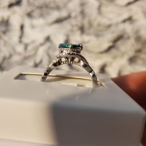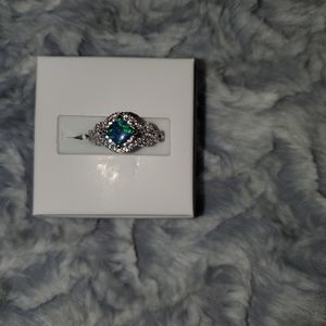 new, stunning🤩🤩🤩, size 8, lab created mystic green fire opal main stone, cz's on sides and around, .925 solid sterling silver, suggested retail $192