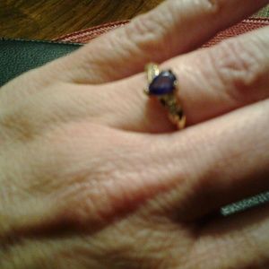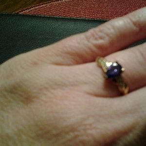 Gold tone size 6 purple and clear colored ring
