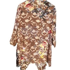 Ladies sheer coverup, size Large, no label at all, pockets, asymmetrical hem