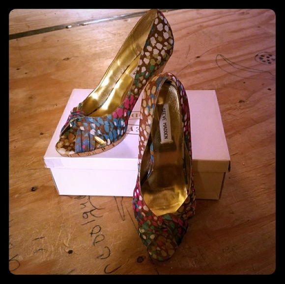 Steve Madden open toe cork heel never worn ladies size 11 heels. 3 in. cork heel