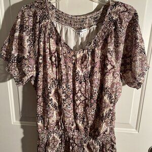 Ladies short sleeve Croft and Barrow shirt size extra large brown cream pink