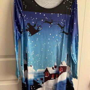 Ladies size Large Christmas / Holiday uneven hem shirt Cute Christmas scene design Brand new