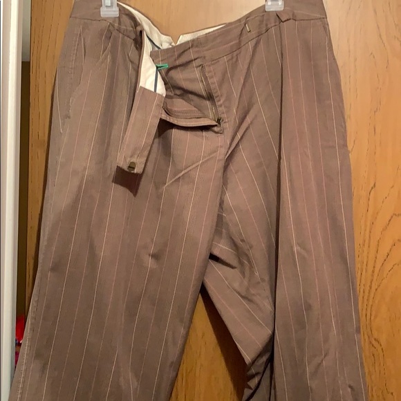 Earth tone colored slacks with cuff and pockets.