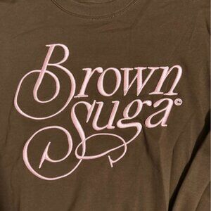 Ladies Brown Suga sweatshirt size large. Brown sweatshirt with pink writing. In good used condition with no stains or holes. Legendary Rootz brand.