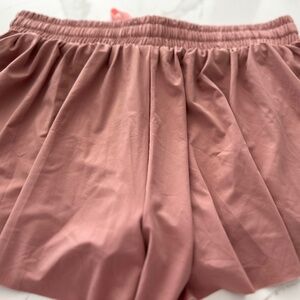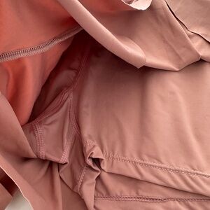 ladies tennis skort with shorts underneath. runs small it can fit a large too. Waist says 30 but it expands . the color is peach