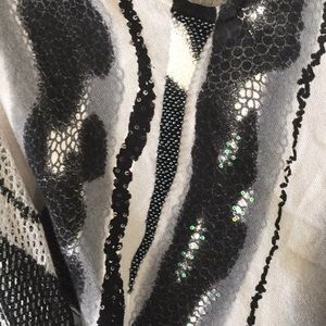 Black grey silver knit top with mesh sleeves great for those cooler summer nights. Machine washable