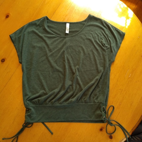 Super soft top by PerSeption Concept, scoop neck, cap sleeves, elasticy at the bottom with side ties. So cute and soft!! Like new.