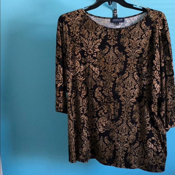 3/4 sleeve, left sleeve has 8 gold buttons from the shoulder to the end of the sleeve.