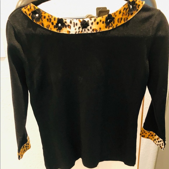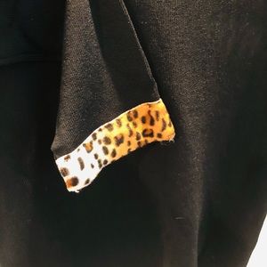 Ladies black stretch top with leopard print trim. Size large but fits small for a large.