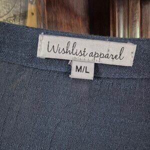 Cute top. Navy, darker than pic. Long sleeves are convertible. Fabric is soft, polyester. Ties in front. Size M/L. Front pockets. NO buttons.