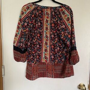 Cute pop over tunic ladies floral BoHo multicolor print top so cute pictures does not do it justice nice bright and vibrant See additional pictures. Thanks for looking. Happy shopping.