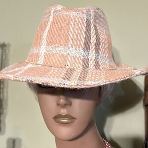Ladies tweed hat, colors are blush, light blue, gray & cream NWOT