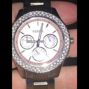 Fossil watch for ladies.bought at the store called buckle and paid 159.00 have a total of 4 i am getting rid of.all work.all have some sort of bling and all are in really good cond..almost new,all of them working interested in more then one here's the deal 2/115.00 3/150.00 4/200.00.if paid for within the next 24 hours take a extra 15.00 off each deal.i will ship within the 24 hours.