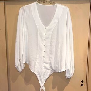Material polyester soft feel. Worn a few times. All buttons attached. Freshly washed