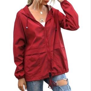 Women's Drawstring Hooded wind breaker/Rain Jacket - Versatile Long Sleeve Outerwear for Casual Comfort