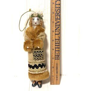 Ladies with Elegance Blown Glass Ornament Lady in Fur Trimmed Coat Christmas 8”