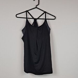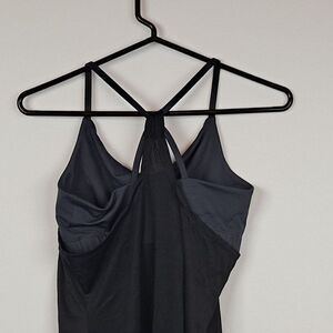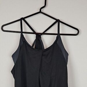 Halter style, pleated front. Great for work outs or summer fun. Measures 15" pit to pit, length is 27".