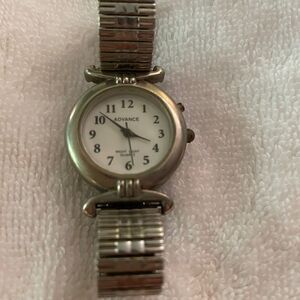Nice advance brand watch with silver stretch band. Very comfy. Works great with new battery.