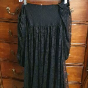 Black Goth Lace Split sides off shoulder maxi dress!!! I Looovvve this dress!!! Its labeled small, has an empire waist with the puff sleeves. It has split sides. So cute for a maternity shoot or even a beachy cover up or beach dress.