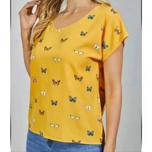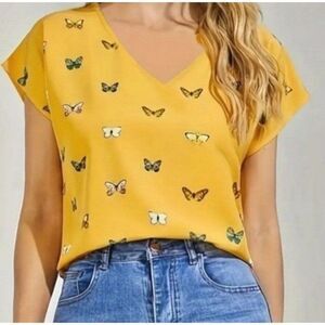 Butterfly Print T-shirt, Casual V Neck Short Sleeve Summer T-shirt, Women's Clothing