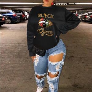 Ladies super cute black long sleeve multicolored graphic attitude sweatshirt. New with tags. Please refer to size chart for measurements.