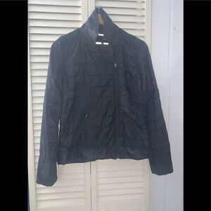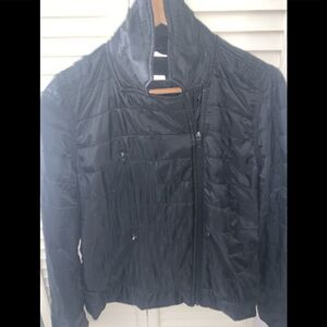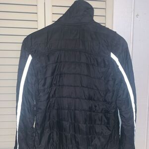 Hurley Jacket Black Puffy, Side Zipper White strips along arms Zipper Cuffs