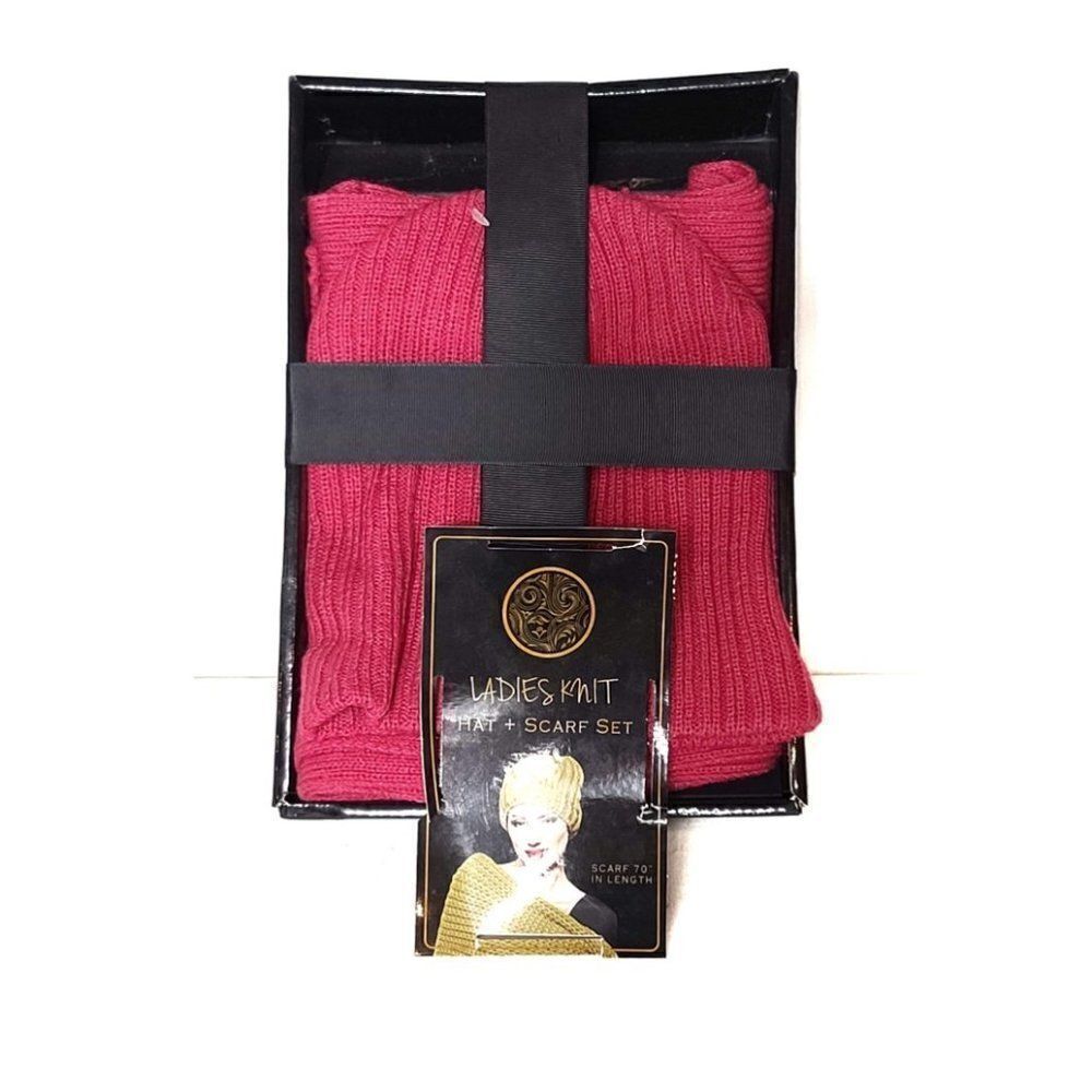 Ladies Knit Bright Pink Hat and Scarf Set. 70" Scarf, Brand New still in its box!