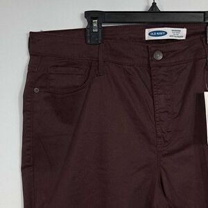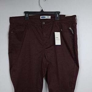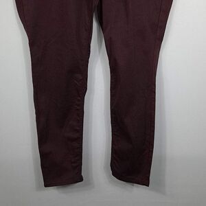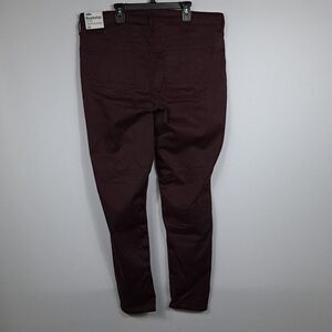 Maroon color, Size 16. Super Skinny, high rise with secret slimming pockets. Measures 38" waist, inseam is 28". Fabric is 53% cotton, 46% lyocell and 3% spandex.