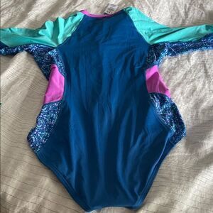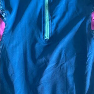 Keep yourself protected and stylish with this vibrant blue and pink rash guard. Perfect for fun in the sun. New. Never worn.