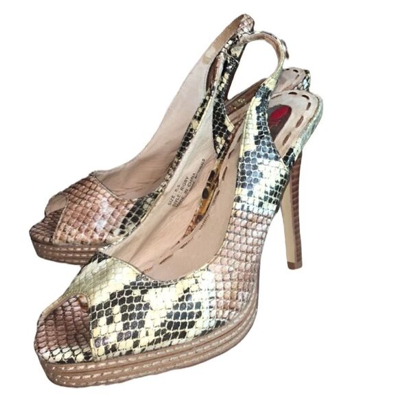 Excellent, clean condition Two Lips “Rigby” sling-back pumps in natural python. All man made materials.