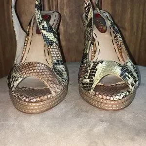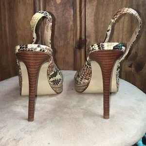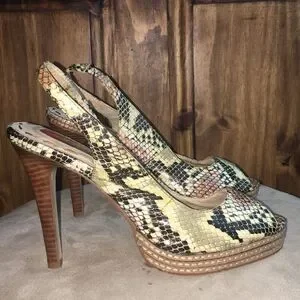 Excellent, clean condition Two Lips “Rigby” sling-back pumps in natural python. All man made materials.