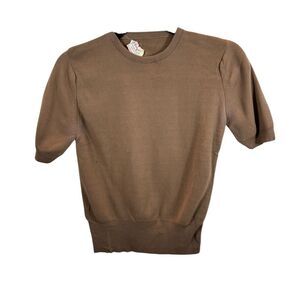 Ladies Vinatge Ban-Lon Brown Knit Short Sleeve Blouse Size Small
