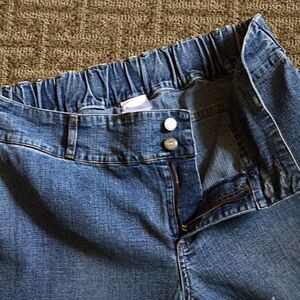 Ladies Ute ankle length maternity jeans from MOTHERHOOD in size medium. In perfect preowned condition. Front zipper with 2 button top. Machine washable. Measurements are as follows: waist relaxed 36”, hips 40”, length from waist 33”, inseam 23”, waist to crotch 10 1/2”.