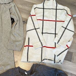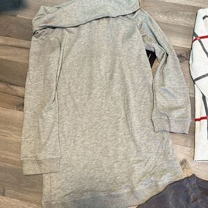These are 3 items in either new or great condition. One sweater dress off the shoulders , high neck sweater and a tee like sweater. Size medium and small but can fit either one. Pet and smoke free home. All sales are final