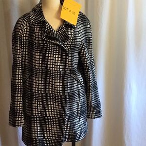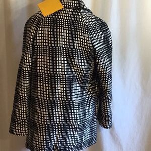 Beautiful black & cream color jacket with front 4 button closures, 2 front side pockets. In new condition! Mid to heavy weight material, suitable for fall & winter wear. Measurements are as follows: bust 38”, coat length 32”, sleeve length 25”, huge hem in sleeves to lengthen if needed.