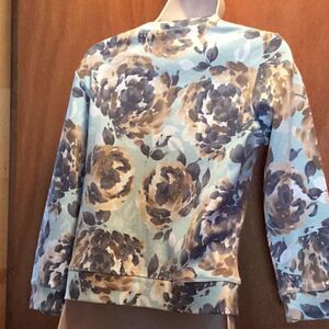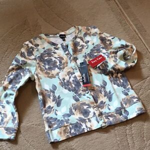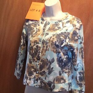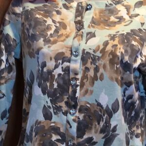 Cute little cotton top NWT from RAFAELLA in size small. Beautiful colors of light mint green, Browns, grays. Front buttons down with jeweled buttons. 3/4 length sleeves, perfect for spring & summer. Measurements are as follows: bust 32 to 33”, top length 19 1/2”, sleeve length 18”.