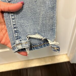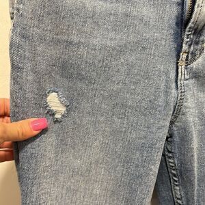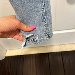 This are ladies gap jean with good stretch to them. The rips of the jeans are meant to be that way. They were only used once. Pet and smoke free home All sales are final