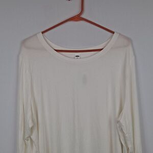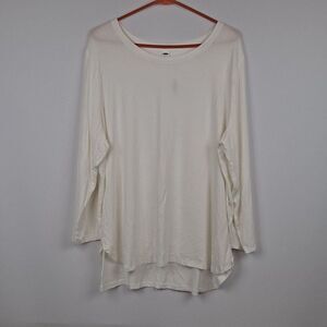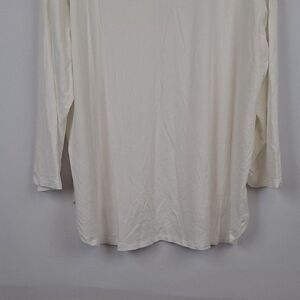 White, size large. Round neck pullover with long sleeves and shirt tail hem. Measures 21" pit to pit, length is 29". Soft and silky